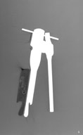 If you increase the exposure, and exeed the black point,the paper will react with the reflected light from the object. In that case, the silhouette will disolve and transform itself into a three dimensional illusion (as you can see in pictures 3 and 4).